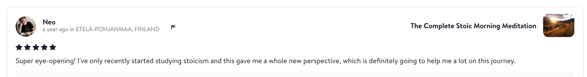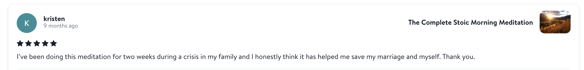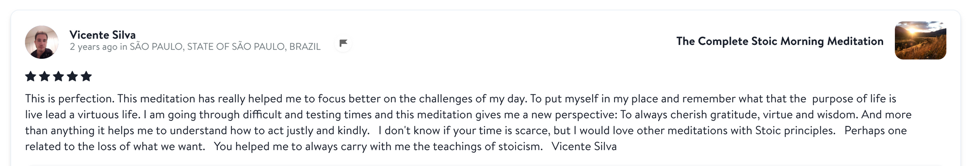 Below I've recorded a guided version of the meditation I do. The power of Stoic exercises like this, can't be understated. Here are some things people have said about the Stoic morning journal exercise: