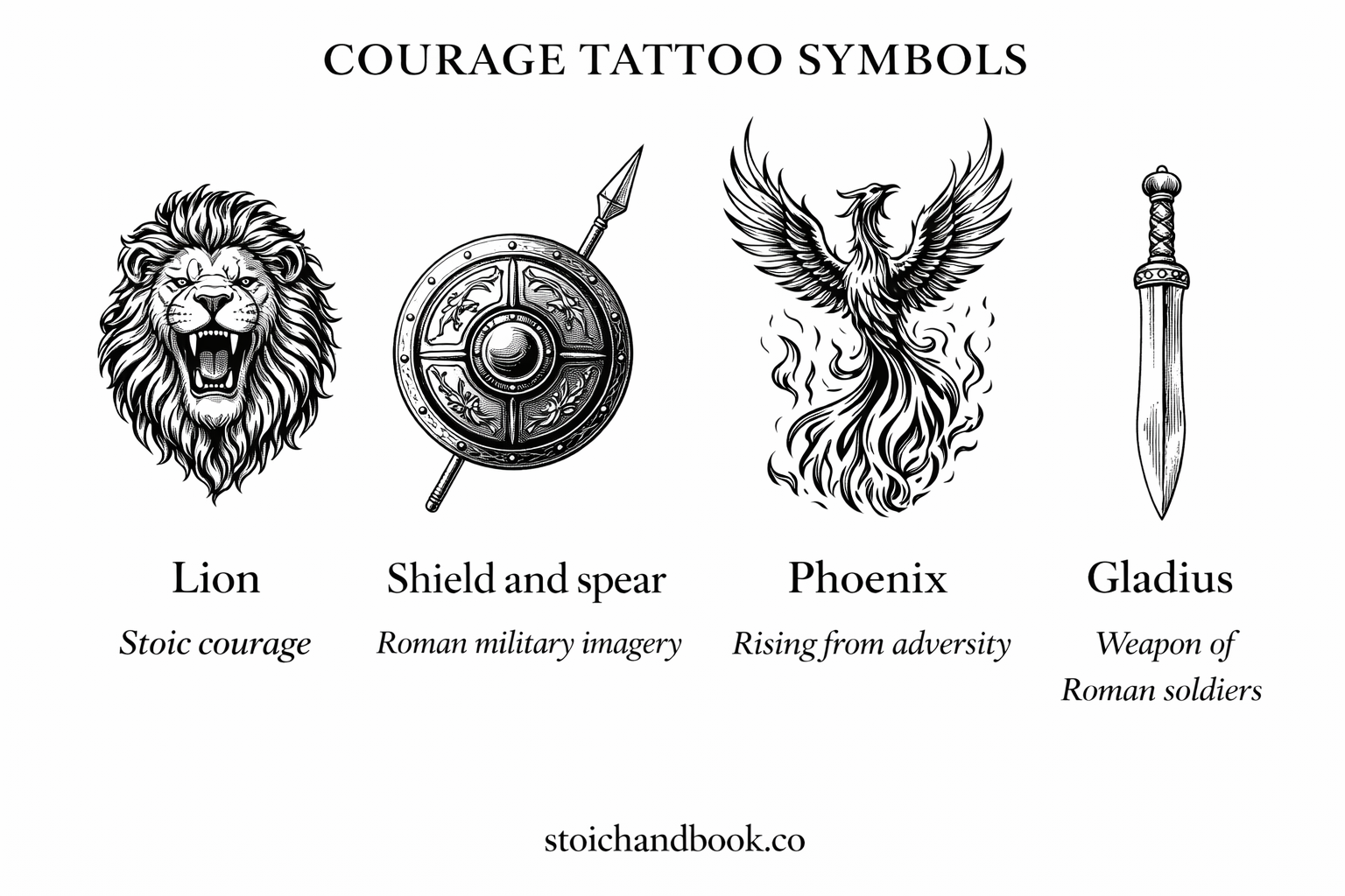 Fun fact: Some Stoic enthusiasts get 4 Stoic virtues tattoos to remind themselves of courage in tough times. Symbols like a lion or shield often represent this virtue in Stoic tattoo designs.